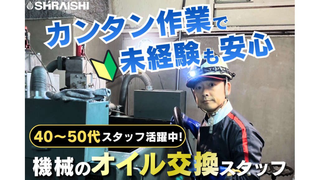 | 職種名 | エレベーターや工作機械のオイル交換作業スタッフ 未経験可 |
