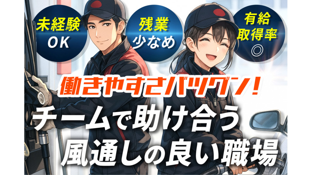 | 職種名 | ガソリンスタンドでのサービススタッフ 未経験可 充実の福利厚生あり |