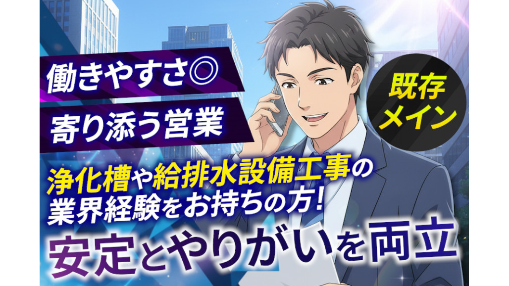 | 職種名 | 水道施設工事会社での法人カスタマーサポート 経験者 有給休暇取得推奨企業 若手活躍中 |