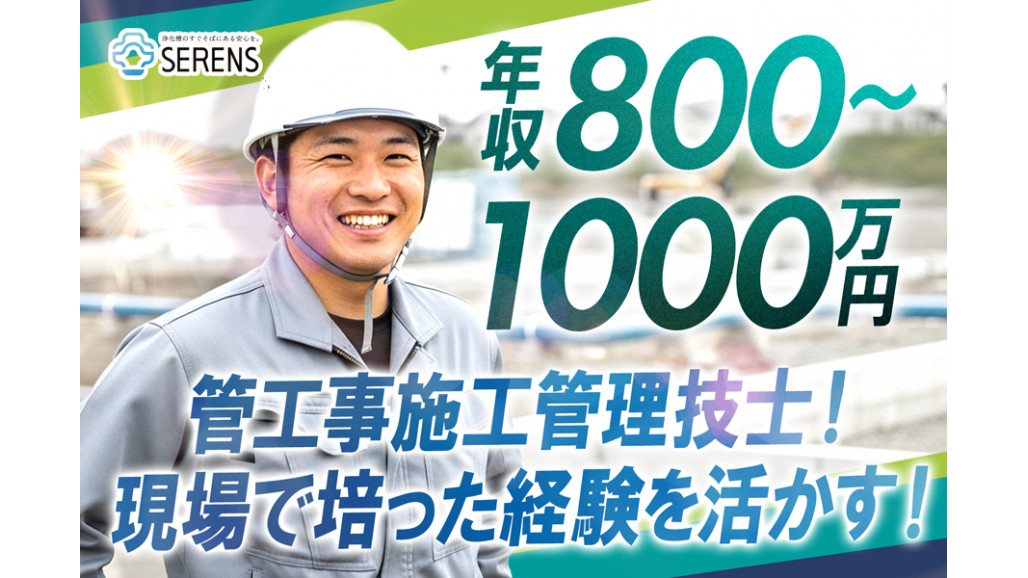 | 職種名 | 管工事施工管理 環境インフラおよび水処理設備の工事管理 エキスパート採用 週休二日制 有給休暇あり |