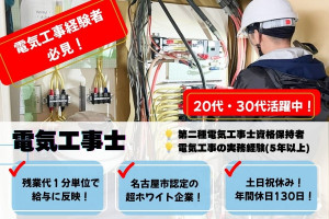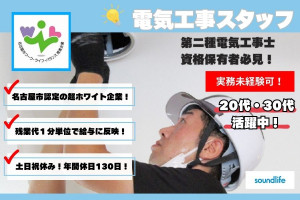 ⭐実務未経験可能!第二種電気工事士の資格があればOK⭐年間休日130日・賞与年2…