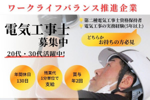 新生活応援 年間130日休みの電気工事スタッフ …