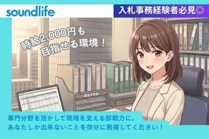 あなたの専門分野を活かして現場を支える即戦力に! 電気工事に関わる公共工事の入札業務を中心に、公共施設・官公庁案件を支える入札事務のお仕事です✨ 無理なく働きながら、専門スキルを活かせる環境です⭕️ ブランクOKなので、仕事に復帰したい方にもぴったりです! 【おすすめポイント】 ✨あなたの専門性を活かせる ✨高時給1,500円~2,000円 ✨シフト相談可 【具体的な仕事内容】 ■入札案件の抽出・管理 (自治体・官公庁ポータルサイトの確認) ■電子入札業務 (参加申請〜開札確認までの操作対応) ■各種申請書類の作成 (入札参加資格申請、配置予定技術者資料など) ■経営事項審査(経審)関連業務 (更新手続き、書類整理の補助) ■契約事務 (落札後の契約書作成、保証金手続き管理) ================ ✅経験を正当に評価する職場 ================ 入札事務の実務経験をお持ちの方は、即戦力として時給1,500円スタート! また、スキルや経験によって時給2,000円も目指せる環境です⭕️ 「以前、建設会社で入札を担当していた」そんなブランクのある方も歓迎します! 最新システムや社内ルールは丁寧にフォローします✨ =========== ✅柔軟な働き方が可能 =========== 週3日〜・時短勤務OK! しっかり働きたいフルタイム勤務の方も歓迎です! 家庭都合のお休みもご相談ください✨ プライベートを大切にして働けます。 ========== ✅専門性を活かせる! ========== あなたの専門スキルを存分に活かせます⭕️ 工事入札の全体フローや書類要件を理解している方はすぐに即戦力に! あなたのスキルで現場や会社を支えてください✨ 【求人ID-NUS】 |