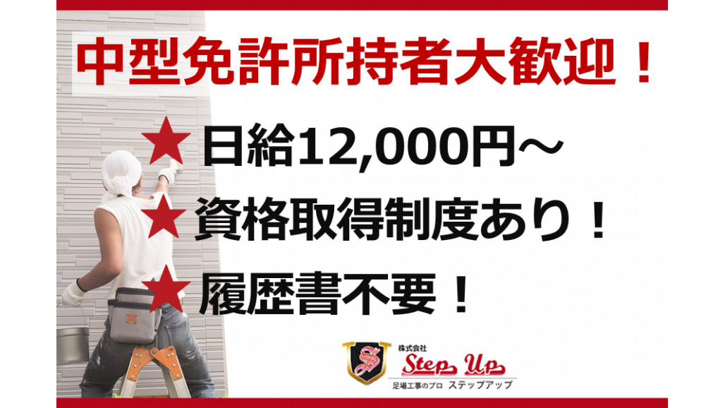 | 職種名 | 足場作業 くさび足場 要中型免許 未経験可 |