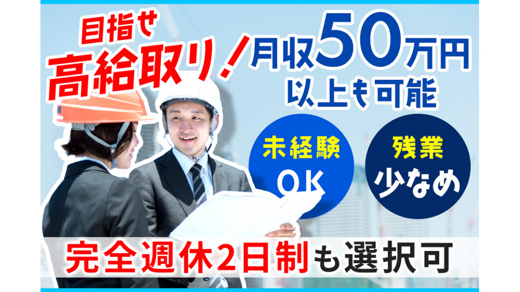 | 職種名 | 建設工事の施工管理スタッフ 完全週休2日制も選択可 |