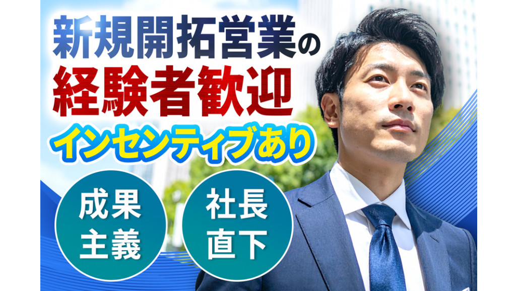 「今日はどこに、どう仕掛けるか」 ――すべては、ここから始まります。 用意された営業リストをもとに、 電話・訪問で法人企業へアプローチ。 決まった型や細かい指示はありません。 必要なのは、あなたの【営業の引き出し】。 うまくいったやり方は続ければいい。 ダメだと感じたら、すぐに変えればいい。 スピード感ある判断で、 評価は数字で返ってきます。 【おすすめポイント】 ・新規法人営業を主軸に数字を追える ・成果が収入と役割に直結する評価制度 ・裁量を持って営業プロセスを組み立てられる ・新規獲得後の案件推進まで一貫して関われる ■具体的な仕事内容 ①法人顧客への新規アプローチ(電話・訪問) ∟リード獲得、課題ヒアリング ∟提案・見積・受注までの推進 ②新規で獲得した案件の推進・管理 ∟協力業者の選定、段取り調整 ∟社内での進行管理 ∟現場確認・立ち会い対応(必要に応じて) ※業界知識や判断に迷う場面は、代表が同行・フォローしますのでご安心ください。 ③反響営業・個人宅対応 ∟地域情報誌などからの問い合わせ対応 ※法人新規開拓が主軸ですが、地域のニーズにも機動力高く応えていくスタイルです。 【担当エリアについて】 あま市を拠点に、東海エリア各地を担当します。 特定エリアに縛られすぎず、案件状況やニーズを見極めながら柔軟に動ける環境です。 【仕事の進め方・営業スタイル】 新規営業先のリストをもとに、テレアポ・訪問を組み合わせてアプローチします。決まった営業トークや細かなマニュアルはありません。 営業の進め方は一人ひとりに任せるスタイル。「どう攻めるか」「どう受注につなげるか」を自分で組み立て、回せる方に最高のスタイルです。 =========== 東海エリアを動く営業 =========== あま市を拠点に、東海エリア各地の法人企業へアプローチ。営業リストをもとに電話や訪問で新規開拓を進めていきます。 エリアを固定しすぎず、案件状況やニーズに合わせて柔軟に動けるのがこの仕事の特徴。 「今日はどこを攻めるか」を自分で考えながら行動できるので、営業としての面白さもしっかり味わえます。 行動力を活かして活躍できる法人営業です。 ============ 自分の営業が武器になる ============ 用意された営業リストをもとに、電話や訪問で法人企業へアプローチします。決まった営業トークや細かなマニュアルはありません。 「どう攻めるか」「どう受注につなげるか」は自分次第です。うまくいく方法は続ければいいし、違うと思えばすぐに変える。 営業経験で培った引き出しを活かしながら動ける法人営業です。 ============== 代表フォローで安心スタート ============== 業界特有の判断や進め方で迷う場面は、代表が同行しながらしっかりフォローします。 新規開拓を軸にしながら、反響対応や案件推進など幅広い経験を積める環境。営業として次のステージを目指せる仕事です。 【求人ID-EGY】 |
