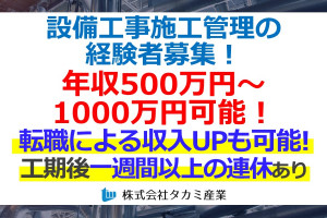 現場監督 設備工事 経験者のみ 中長期現場完了…