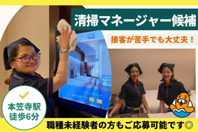 スパリゾートホテルの清掃マネージャー候補を募集! ホテルの客室清掃部門のスタッフ(40代-60代女性が多く在籍)の管理をお願いします。 具体的な業務はパートさんのシフト作りや、客室清掃の備品の発注管理や在庫管理があります。 最初は業務に慣れてもらうため、現場作業業務をお願いします。 家事の延長のような感覚でできるカンタンな清掃やベッドメイク業務や清掃管理全般となります。 未経験スタートのスタッフ活躍中!勤続20年以上の方も在籍中! 無理なく働けるので長く続けられる環境です。 ----------------------------------- ▼ラクラク通勤 笠寺駅徒歩圏内のアクセスの良さ! お仕事帰りにお買い物も楽しめますよ! 交通費も全額支給で通いやすい! まずは一度お問い合わせください! 【求人ID-SSS】 |