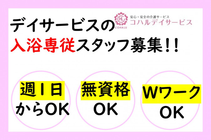 | 職種名 | 高齢者支援(入浴専従) 週1日から可 デイサービス |