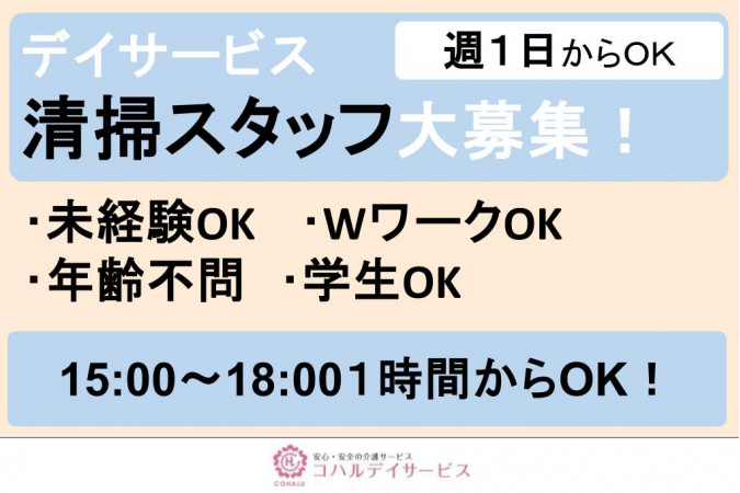 | 職種名 | 清掃スタッフ 週1から可 デイサービス |
