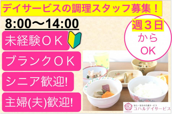 | 職種名 | デイサービスの調理スタッフ 未経験可 |