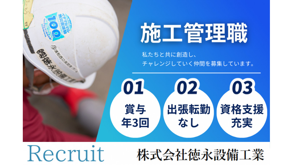 ■仕事内容 さいたま市を中心とした公共施設(小中学校等)や集合住宅における、給排水・衛生設備・空調換気工事の施工管理をお任せします。 《具体的な業務》 ・工程管理、品質管理、安全管理 ・官公庁や建設会社(ゼネコン)との連絡調整・折衝 ・現場確認や材料の手配サポート ・職人さんへの連絡・打ち合わせ ◎案件の割合: 民間 6:公共 4 ◎施工実績: さいたま市・水道局発注案件、集合住宅、個人宅の給排水設備など 現場への直行直帰も相談可能! 地元に根差した案件が中心のため、長距離移動の負担が少なく、腰を据えて業務に集中できる環境です。 《徳永設備工業の求人ポイント!》 1. キャリアと報酬の両立を実現 ◆年間賞与3回!業績は右肩上がりで、決算賞与で社員へ還元しています! ◆創業50年の確かな実績があり、地元のゼネコンや官公庁から厚い信頼◎ 2. 業界に先駆けた「働き方改革」を推進中 ◆分業制の導入: 書類作成をサポートする「事務メインのスタッフ」が在籍しています。現場から戻ってきてから膨大な事務作業に追われることはありません。 ◆休日を拡大中: 第2・4土曜休に加え、今年中の「完全週休2日制」導入に向けて取引先と調整を進めています。 ◆長期休暇も取得可: 業務調整次第で連休の取得も可能です。 3. 未経験からでも「数千万円〜数億円」の現場を動かす裁量 当社では、社歴や年齢に関わらず、意欲ある方に責任あるポジションをお任せしています。 ◆入社3年目(28歳・未経験入社): 案件金額5,000万円超の「市立学校トイレ改修工事」の現場責任者に抜擢。 ◆入社5年目(38歳・未経験入社): 案件金額2億円規模の「老人ホーム建替工事」の責任者として活躍。 大きな裁量を持って現場を動かす手応えと、それを支えるベテランのフォロー体制があります。 【求人ID-【P-SMD01】】 |