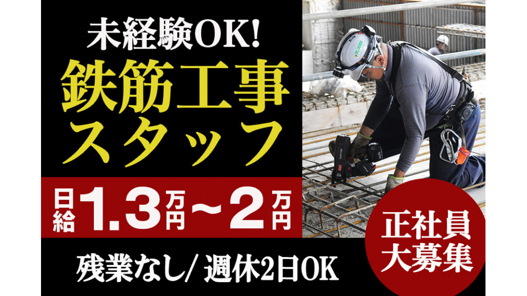 職種名 | 大型建築物の鉄筋工・未経験OK 残業なし 週休2日可 |