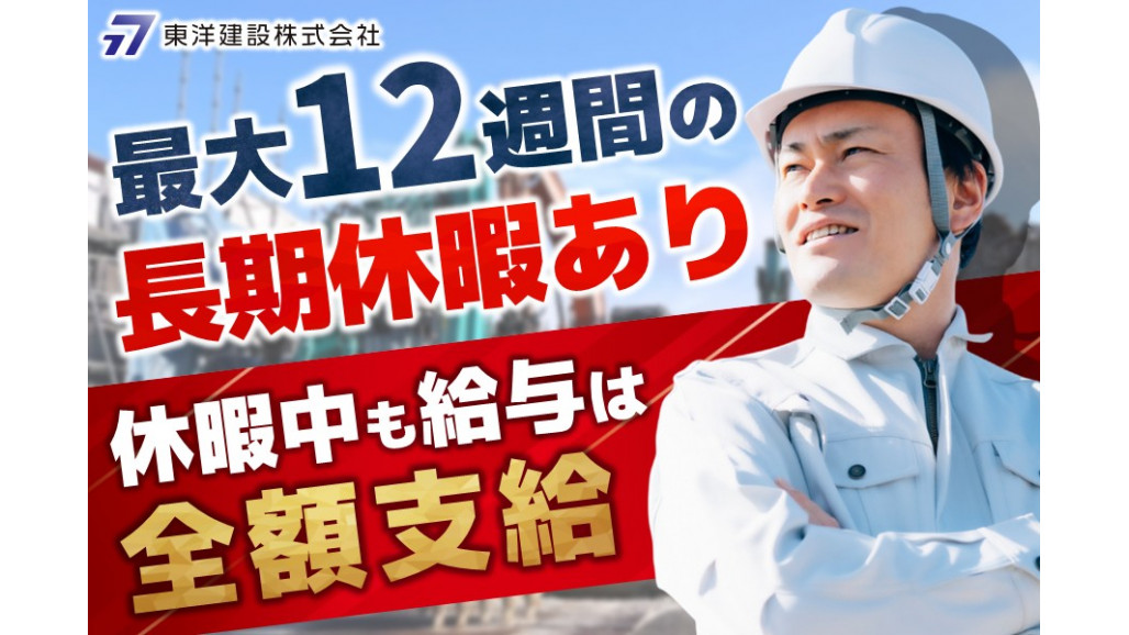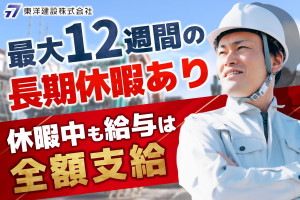 | 職種名 | 建設業の現場スタッフ 未経験可 資格取得支援 最長12週間の休暇あり |