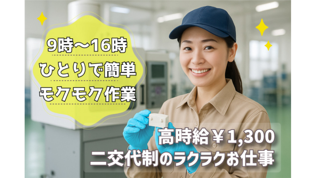 ⭐未経験でも始めやすいオシゴト⭐ 【PRポイント】 ✅高時給 1,300円 ✅電車通勤OK!駅から徒歩圏内 ✅トヨタ系大手企業のキレイな職場 ✅軽い部品の検査作業 ■2026年4月30日までの期間限定(延長もあり) 【具体的な仕事内容】 軽い自動車部品の塗装した面の検査をお願いします。 モクモク・コツコツ作業になります。 ご希望や適正に合わせて、カメラや目視で決められた場所のチェックもあります。 ================= ストレスなく働ける環境 ================= 〇質問しやすい 〇イチから丁寧に教えてくれる 〇重量物がないから身体への負担少 など、働きやすい環境が自慢です。慣れたら、単純な軽作業(ルーティンワーク)で、モクモク作業できるのもウレシイ! 軽い部品を取り扱うので、女性スタッフも多数活躍中です! ====================== 活躍中のスタッフさんのコメント ====================== 【Aさん】 初めて、工場という職に就きました。 不安でいっぱいでしたが、営業の方のフォローでずっと頑張ることができました。 こんなに良い会社に就職できたおかげで、アパートから新築一軒屋に引っ越し、結婚もしました。 ※結婚は、別の会社の方ですが、2人で協力して、一軒家を購入してもやっていける判断だと思います。 ============ こんな会社です ============ ■社員数 約450人(うち派遣社員 約200人 男女比5:5) ■年齢層 20代~50代までのスタッフが活躍中です! あなたもぜひ一緒に働きませんか。ご応募、心よりお待ちしています! 【求人ID-ART】 |
