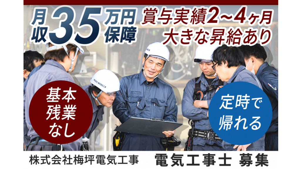 お客様からの信頼が厚く沢山の工事依頼を頂いている当社にて、電気工事の経験者を募集致します。 【PRポイント】 ✨月収35万円保証!前職のお給料考慮します ✨昇給・賞与、各種手当も充実 ✨直行直帰も可!有給休暇高取得率 ■具体的なお仕事内容 工場や商業施設、マンションなどの照明器具の取付け工事やコンセント周りの電源工事をお任せします。 ・工具や電線ケーブル等の備品の準備 ・電線ケーブルの設置作業やサポート業務 ・コンセント、スイッチ、照明器具の取付け 【チームで工事を行います】 依頼の規模により、2~10名のチームになって作業を行います。経験者の方は出来る工事からスタートして頂き、分からない事や不安な事は先輩スタッフのアドバイスやフォローの元、安心してお仕事できます。 【工事するエリア】 愛知県内(名古屋市、豊田市、岡崎市、刈谷市、安城市、西尾市、みよし市などの近隣地域) 【電気工事する建物】 ・マンションやアパート ・商業店舗や各種工場など ==================== 残業ほぼなし!家族の時間を大切にできる ==================== 現場が早く終われば15時台に退社できる日もあり、残業も基本的にありません。 土日休みの希望も出せるため、子どもの行事や家族旅行にもしっかり参加可能。 無理のない働き方を実現しながら、大切な人との時間を守れますよ! ============== 月収35万円保証!収入UPも可能 ============== 月収35万円保証に加え、昇給や賞与で大きく収入を伸ばすチャンスがあります。 前職の給与を考慮するため、これまでの経験を無駄にせずスタート可能。 資格取得は全額会社負担で、手当も充実。収入とキャリアを両立できる環境です! ============ 地元で安定した仕事量! ============ 愛知県内を中心に、工場や商業施設、マンションなど幅広い案件を安定的に受注。 転勤もなく、地元で腰を据えて働けます。 馴染みある地域で、家族との生活基盤を守りながら経験を発揮できるのが魅力です。 ++++++++++++++++++ 経験者に選ばれる職場環境です ++++++++++++++++++ 経験者で転職した社員も多数在籍しています。社員が働きやすい環境を整えるための努力は惜しみません! ■社員の声 「柔軟に休暇や勤務スケジュールのご相談に対応してくれる。」 「給与面が非常に良く、業界平均より高めの報酬が得られる。」 「フレンドリーな雰囲気で、社員同士のチームワークも抜群。気を遣わずリラックスして働ける。」 従業員の気持ちを理解し、「働きたくない」と感じる要素の排除に努めています! +++++++++++++++++++++++ 何より働くスタッフを大事にしています +++++++++++++++++++++++ 当社では、何より働くスタッフを大事にしています。お客様と接しているのも社員、工事を実際に行ってくれているのも社員です。働くスタッフの為、様々な取り組みをしています。 ✨利益は社員に最大限還元! ✨電気工事士関連の資格取得費用は全額会社負担 ✨家族の旅行やイベントがあれば有給休暇推奨 何より社員が安心して長く働ける環境を整えたいと様々な取り組みをしてきました。 これからも一人ひとりのプライベート時間をしっかりと確保したうえで、社員が気持ちよく活躍できる会社にしていこうと思っています! 今より収入を上げたい方も、家族との時間を大切にしたい方も、どちらも叶えられる職場です。 経験を活かして安定した高待遇で働きたい方、ぜひお気軽にご応募ください! 【求人ID-UMK】 |