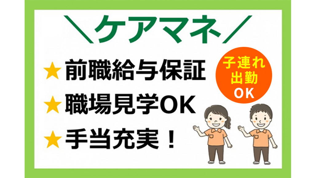 小規模多機能型居宅介護のケアマネージャー(介護支援専門員)をお任せできる方を募集しています。実務経験のある方、お力を貸してください。 特別養護老人ホームや介護老人保健施設、住宅型有料老人ホームやグループホーム、デイケアなどで施設ケアマネをされていた方は即戦力です。 生活相談員、介護認定調査員、社会福祉士としてケアプランの作成や介護認定、相談対応、モニタリングなどをされていたご経験も活かせます。 居宅介護支援事業所や地域包括支援センターなどでケアマネをされていた方もご一考ください。 ハローワークなどで「前職給与保証」「福利厚生充実」のケアマネージャーの正社員のお仕事をお探しの方からのご連絡もお待ちしています。 |