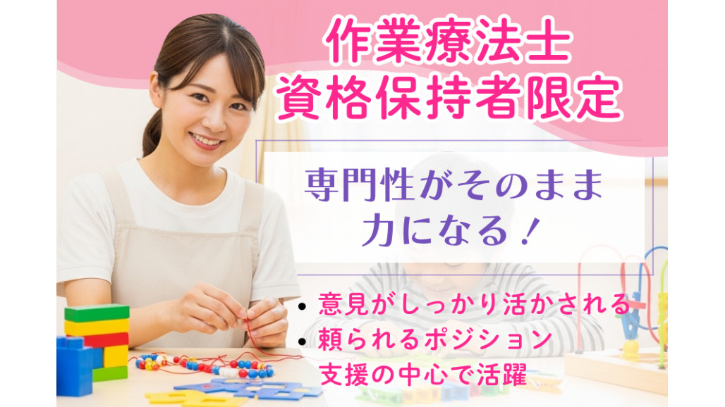 | 職種名 | 放課後等デイサービスの作業療法士・時短勤務可 週休2日 残業少なめ |