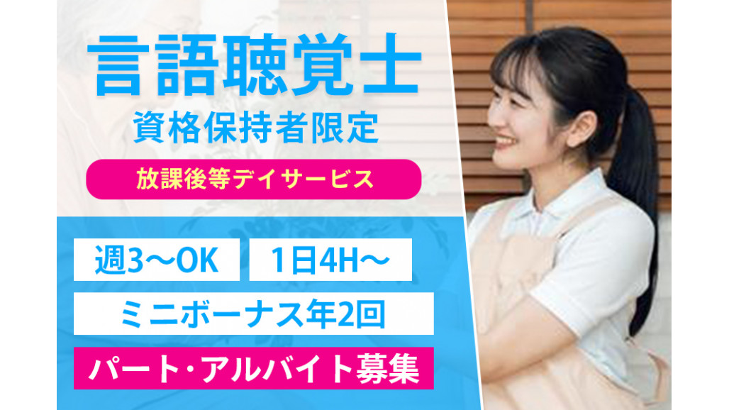 | 職種名 | 言語療法士 言語聴覚士・放課後等デイサービス・平日のみ1日4h~OK |