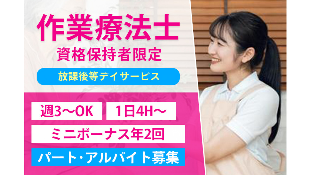 | 職種名 | 放課後等デイサービス リハビリ職 作業療法士・ミニボーナス |