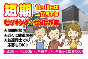 ピッキング・仕分け✅週3日〜 ※1日3h〜✅午前中のみ、午後のみ勤務OK✅時間・曜…