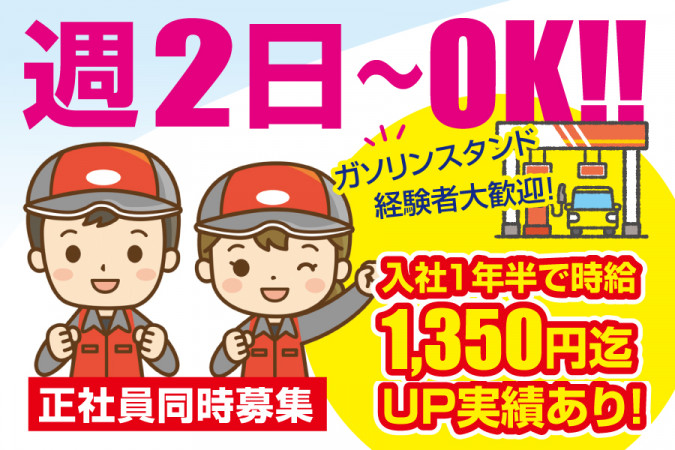 随時昇給有、車通勤可、制服貸与、社員割引有(ガソリン・カーケア用品)、社員登用制度有 |