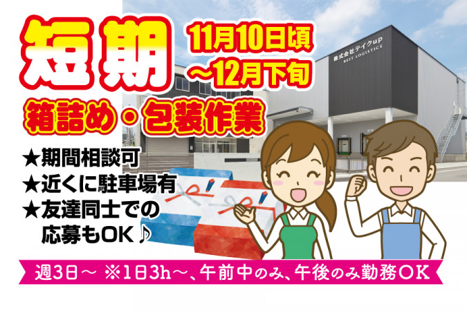 | 職種名 | 箱詰め・包装作業/短期/軽作業 |