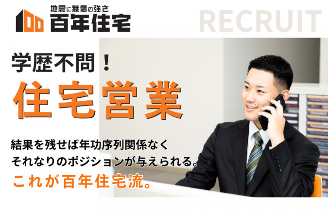 弊社の住宅営業職は、完全な「反響営業」です。展示場にお越しくださった方に対して「地震に無傷の家」をご紹介し、丁寧なヒアリングを行った上で最適な提案を行います。 私たちの「地震に無傷の家」はすでに大きな地震に耐え抜いてきた実績があることから、興味を持って展示場にお越しくださっている方が多く、正しい情報をお伝えすることでより深くご理解・ご納得の上でご契約いただくことができます。 今回は、更なる人材強化を目的として採用する予定です。未経験からでも自信を持ってお客様にご提案ができるよう、様々なツールの活用や教育制度を整えておりますので、安心してご応募ください。 《具体的な業務内容》 ・展示場でお客様のご要望やお困りごとをヒアリング ・ヒアリングした内容をもとに、地震に強い”WPC工法”の住宅をご提案 ・資金計画などの費用面についてのサポート ・間取りやプランニングについてのご提案やご相談 ・住まいにあった土地探し ・契約に関する諸手続き ・施工管理など現場とのコミュニケーション ・完成した住宅の引き渡し ・アフターサポート など ーーーーーーーーーーーーーーーーー 【百年住宅株式会社の魅力ポイント】 ーーーーーーーーーーーーーーーーー ◆未経験でも安心して挑戦できる環境! ◎教育担当がつく「マイスター制度」を導入!ロープレなど研修が充実! ◎入社半年で売り上げ2位、2年目で全国5位という事例も! ◆コアなファンがいる”WPC工法”の住宅の魅力を伝える仕事! ◎「数多くの地震に負けなかった実績のある家」だからこそニーズがある! ◎多くの方に魅力が伝わるようなイベントを一年通して開催しています! ◆福利厚生が充実!長く働き続けられる会社を目指しています! ◎賞与や退職金制度があり安心!ライフプランも立てやすい! ◎家族がいる人でも安心!月に一度は土曜か日曜に休みが取れます! 【百年住宅株式会社について】 百年住宅株式会社は昭和50年の創業以来、全国展開を続けています。現在ではベトナムにも会社を持ち、国内外に限らず成長を続ける企業です。 私たちは、家という人生で大きな買い物をしていただくお客様に対して「信頼していただくこと」を一番大切に考え、日々の業務にあたっています。これからも、住む人の安心・安全と幸せを守るために、積み重ねてきた経験と実績、最新技術による最高品質の家づくりを追求し続けます。 《家を売るのではなく”未来の安心・安全”を届ける!》 日本は、地震大国と呼ばれます。全国的に、いつ大きな地震が起こるかもわかりません。 百年住宅がお届けするのは、”いつ地震が起きても安心・安全に暮らせる家”です。 そんな家を多くのお客様にお届けする一員として活躍していただく方には、「目標を持ち、諦めずに努力し続ける人」であってほしいと願っています。これまで、弊社で結果を出している人は「最後まで諦めずに努力し続けている人」です。 ぜひ、私たちと一緒に成長し、お客様の幸せも自分の幸せも叶える人になりませんか? |