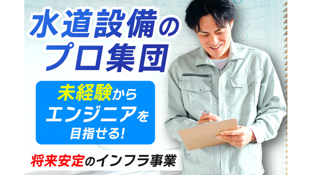 | 職種名 | 水道インフラエンジニア 20~30代が多い職場 未経験可 週休2日制 長期連休あり |