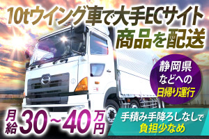 • 業界未経験積極採用 10t大型トラックでの中長距離フリー便 借り上げ社…