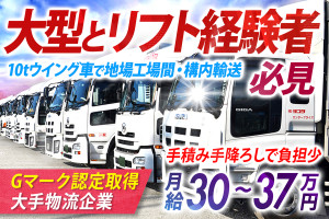 • 10tトラック 部品地場配送 大型車乗務とリフト経験者 借り上げ社宅制…