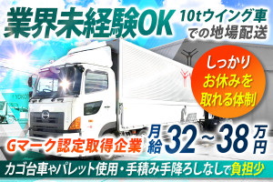 • 業界未経験積極採用 10tパワーゲート車 地場日勤店舗配送 手積み手降…