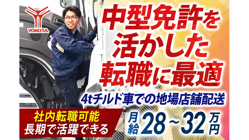 4tチルド車に乗り、ディスカウントスーパーへ店舗配送をお願いします。 ✅業界未経験積極採用中! ✅最短3日で勤務開始可能! ✅月給約28万円~32万円 ✅運行管理者などのキャリアアップも可能 ✅高速道路の利用など余裕のある配車で安心 \事業拡大への取り組み/ 時代の最先端を行くために、今後も更なる成長が見込まれる、大手ECサイトの物流部門やラストワンマイルを担う物流会社との直取引・定期便のビジネスを中心に益々全拠点拡大に向け取り組んでおります。 ____________ ■具体的なお仕事内容■  ̄ ̄ ̄ ̄ ̄ ̄ ̄ ̄ ̄ ̄ ̄ ̄ 【使用車両】 ・4t中型チルド車 【取扱い荷物】 ■配送物:食品など ■荷役方法: ・カゴ台車やドーリー ・手積み手降ろしなし ※体への負担も少なめです! 【運行内容】 ■配送件数:1日 4~5件 ■運行形態:日帰り運行 ■配送エリア:例)関西エリアへ(近畿圏内) ※基本高速道路を使用しますが一部下道もございます。 ※便の内容により若干変更の場合あり ▶トラックを徐々に新しくしています! ▶現場あがりの管理者なので、ドライバーに寄り添った体制となっています。 ===================== プロのドライバーを目指す その先のジョブチェンジも可能! ===================== ✅入社後は研修を充実させています。 しっかり学ぶ場があり、無理なくプロのドライバーとして勤務いただけます。 ✅「社内転職」リスクなしでジョブチェンジ! 別職種の方が合っているようなら、在籍したままで「社内転職」をすることもできます。 毎月「ワークライフパートナー」と面談があり、いつでもジョブチェンジを目指せますよ! ・社内で別の職種のチャレンジ ・体力的な理由からのキャリアチェンジ あなたの人生に寄り添い、年齢を重ねても安心して働ける環境です。 ===================== 「記念日休暇」「家族思いやり手当」 家族や大切な人との時間を充実させる制度 ===================== ▶「記念日休暇」 大切な日をしっかり満喫! 誕生日や特別な日は、仕事を忘れて自分のための時間をしっかり確保。心もリフレッシュして、また前向きに働ける環境を整えています。 ▶家族思いやり手当 両親とご飯を食べるときなど、家族のために使うお金を、ヨコタが一部負担する制度です。「人と人のつながり」を大切にする思いから、活用する社員が増えています。 ================== 普段からしっかり休め、 心にも時間にもゆとりを。 ================== 私たちは、ドライバーが無理なく働けるよう、働きやすい環境を徹底しています。 ■長時間労働なし: 無理のない配車計画で、心身ともに余裕をもって働けます。 ■週1日以上のお休み: 毎週きちんと休みが取れるので、プライベートの時間も大切にできます。 ■高速道路を利用した配送: 移動時間を短縮し、ゆとりあるスケジュールで業務に取り組めます。 無理なく働ける環境で、長期にわたりご活躍いただけます。 =============== 京都営業所について =============== 「すぐに馴染めた」という声も多い、明るくワイワイした職場となっております。 気さくなメンバーが多く分からないことも気軽に聞けるため、未経験の方でも安心してスタートできます。 新しい環境に不安がある方も、きっとすぐに馴染んでいただけますよ。 ぜひ、ご応募ください! 【求人ID-YOD】 |