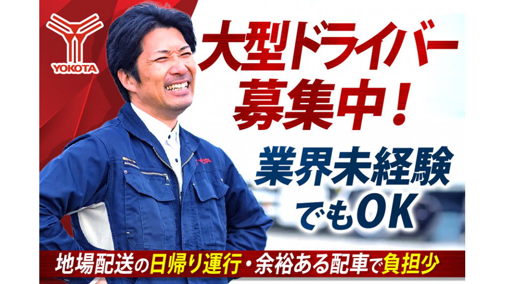 \夜間の地場配送/ 10t大型車に乗り、食品の固定ルート配送をお任せします。日帰り運行なので毎日家に帰れます。 ✅しかも高給与!月給約47万円~ ✅安心の日帰り運行 ✅業界未経験スタート多数! ✅最短3日で勤務開始可能! ✅手積み手降ろしなし!負担少なめ ▶▶Point 大手ECサイト物流部門やラストワンマイルを担う物流会社との直取引・定期便のビジネスを主に益々全拠点拡大に向け取り組んでおります。 ____________ ■具体的なお仕事内容■  ̄ ̄ ̄ ̄ ̄ ̄ ̄ ̄ ̄ ̄ ̄ ̄ 10t大型トラックの 地場での店舗配送のお仕事です。 【使用車両】 ・10t冷凍冷蔵車 【取扱い荷物】 ▶配送物 :食品など ▶荷役方法:カゴ台車 ・基本、手積み手降ろしなし ※体への負担も少なめです! 【運行内容】 ▶運行形態 :日帰り運行 ▶配送エリア:松本・甲府エリア ※便の内容により若干変更の場合もございます。 ==================== 自分の時間も、家族との時間も大切に。 「しっかり休んで、しっかり働く」が基本! ==================== ・日帰り運行だから、毎日家に帰れて安心 ・体も気持ちも切替え、整えられる勤務体制 ・ムリのない配車&高速道路利用で効率よく働ける 「今日はしっかり働く日」「明日は自分を整える日」そんな働き方ができるのが、当社の魅力です。 仕事もプライベートも、どちらも大切にしたい方にぴったりの職場です。 \特別な休暇制度もご用意!/ ▶ 記念日休暇 誕生日や節目の日は、自分のための時間を。しっかりリフレッシュできる制度です。 ▶ 家族思いやり手当 家族のために使うお金を、ヨコタが一部負担する制度です。「人と人のつながり」を大切にする思いから、活用する社員が増えています。 ==================== 【未経験から、プロドライバーへ】 未来につながる第一歩を、ここから。 ==================== 当社では、経験ゼロからスタートしたドライバーが多数活躍中。入社後は、運転技術や業務の流れを一つひとつ丁寧に学べる研修をご用意。 「不安」を「自信」に変えていける環境です。 さらに将来は、運行管理や配車業務などへのステップアップも可能。現場から物流全体を支えるキャリアを築いていけます。 「ただ運転するだけじゃない」 物流のプロとして、長く成長していきたい方にぴったりの職場です。 ▶ご応募、お待ちしています! 【求人ID-HOD】 |