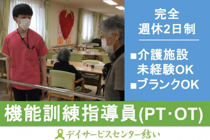 【必須】 ■下記いずれかの資格をお持ちの方 ・理学療法士 ・作業療法士 ※柔道整復師の方もご相談ください ■普通自動車免許(AT限定可) ※送迎業務が可能な方のみ必須です。 【その他】 ・学歴、経験不問 ・介護施設未経験の方も活躍中! ・リーダー・主任を目指したい方歓迎! 働きやすい環境と、ご利用者様に心から感謝の言葉を貰える仕事をしてみませんか? ■こんな方におススメ 機能訓練のことだけではなく、介護やイベント・企画、営業にも興味がある方活躍中です。 施設自体まだまだこれからご利用者様に来ていただきたいと考えています。 一緒に考え、盛上げてくださる方、マネジメントにも興味のある方活躍中です。また株式会社結いとして、今後も店舗展開を計画しています。 |