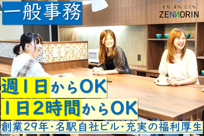 | 職種名 | 事務 週1日から可 名古屋駅徒歩圏内の新しいオフィス |